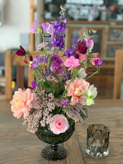 "Mein Blumenkurs war ein tolles Zeitfenster mitten im Alltag. Der prächtige Garten aus dem ich mich bedienen durfte und Gaby's freundliche Art taten mir gut. Ich ging inspiriert, entspannt und mit einem wunderschönen Gesteck beladen nach Hause." Debora Bär, September 2023